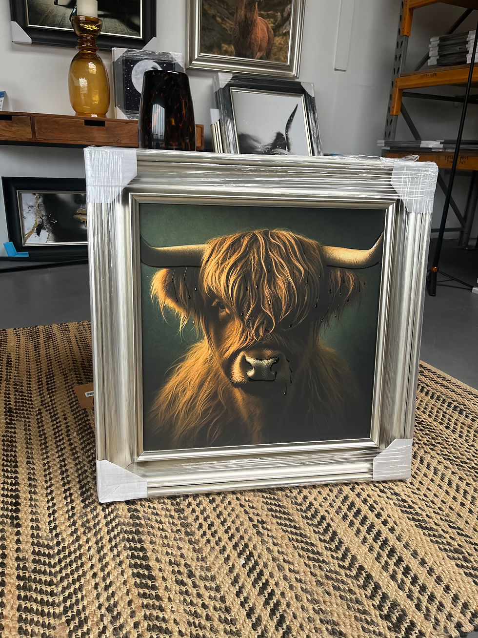 Highland Cow Canvas Frame Liquid Art Champagne Frame